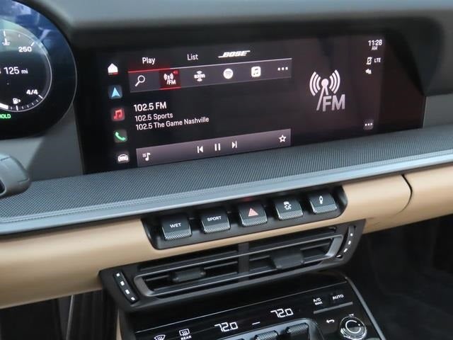 - Radio: Porsche Communication Management (PCM) -inc: online navigation module, Connect Plus (wireless Apple CarPlay and wired Android Auto (3 years included), LTE communication module, wireless internet access and numerous Porsche Connect Services), SiriusXM w/360L (3-month trial), integration of Apple Music and Apple Podcasts, voice pilot w/natural language understanding and activation via Hey Porsche, navigation plus w/real time traffic information and online map update, sound package plus (analog sound system, 8 loudspeakers, 150-watt total output w/integral amplifier and digital signal processing) and voice control